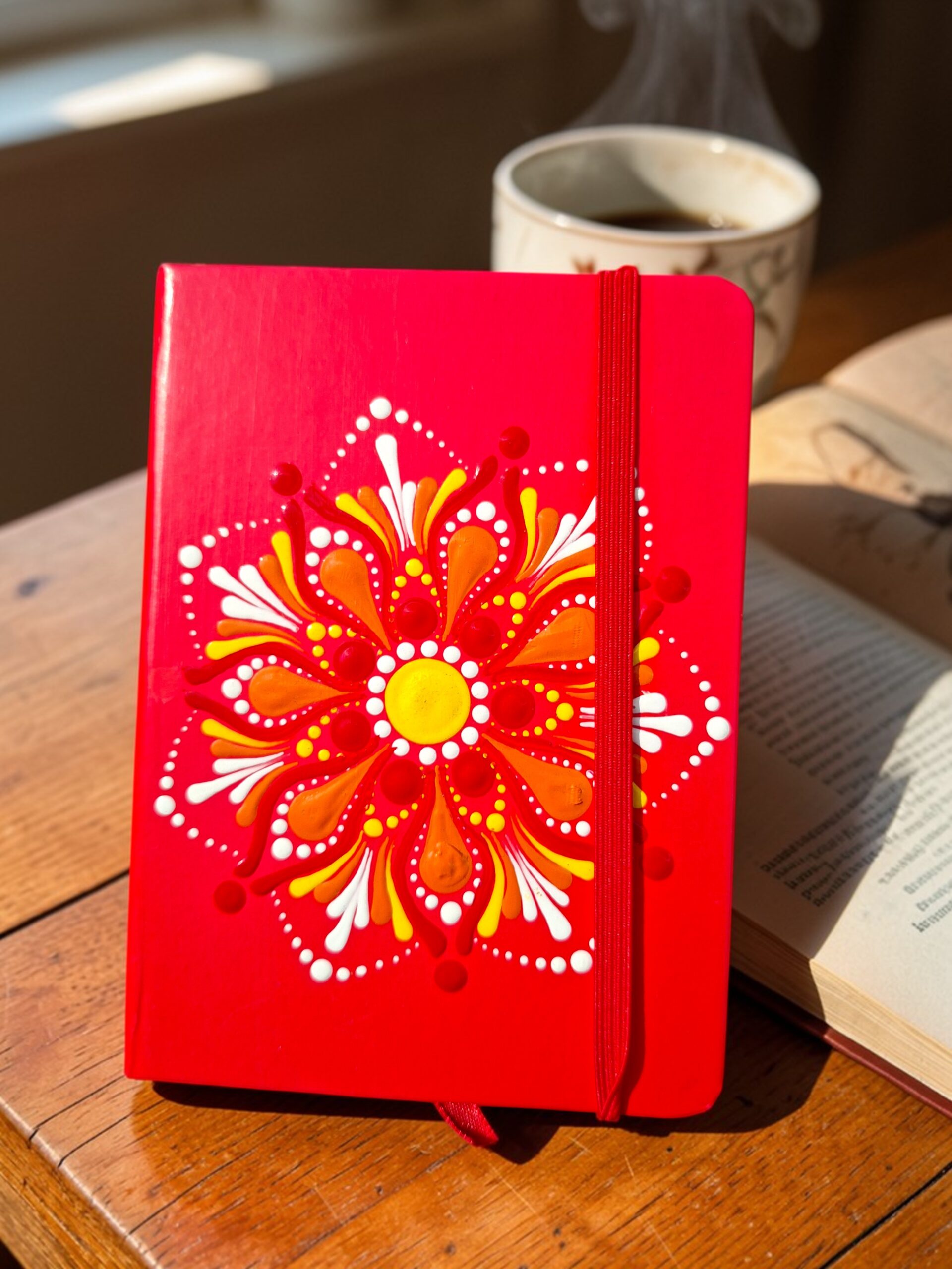 Kézzel festett termék, piros, narancs és sárga színekben.